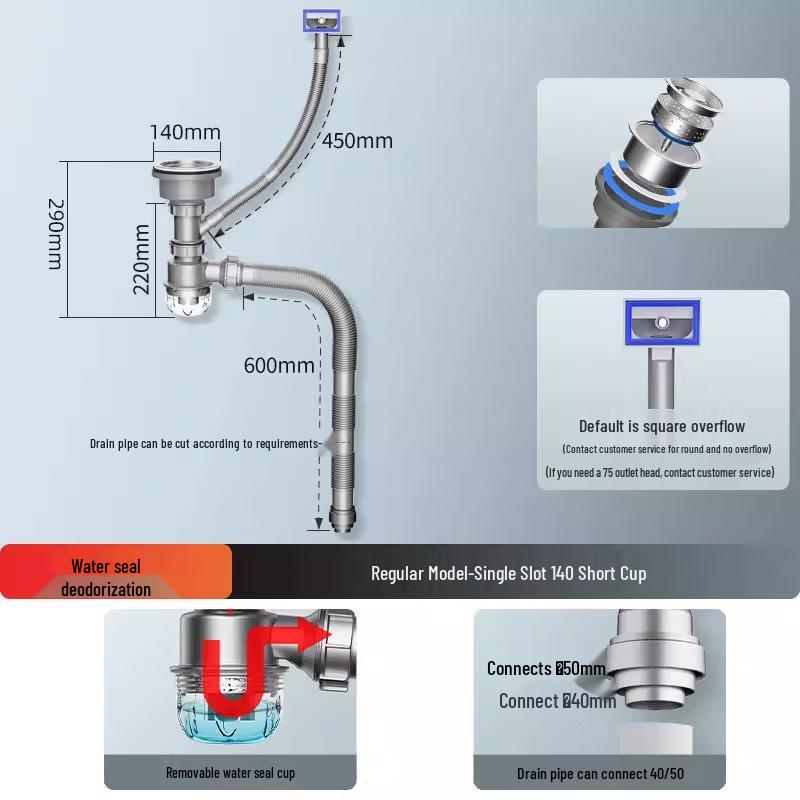 МодельСливное отверстие в форме тыквы, короткая чашка 140, для одинарной раковины