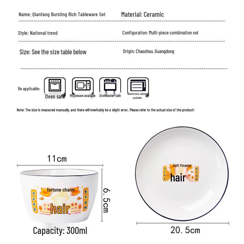 Prosperity-Themed 10-Piece Ceramic Tableware Set
