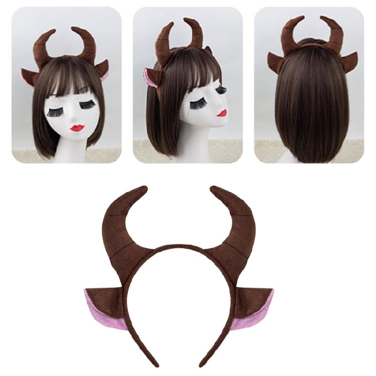 Portable Bull Horn Headband Children's Animal Headpiece Party Theme Headgear Hairpiece Accesories for Various Occasion