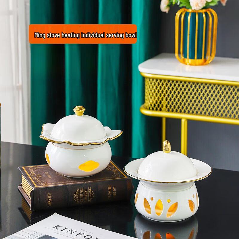 МодельИндивидуальная кастрюля для тушения с золотым ободком, подогреваемая свечой