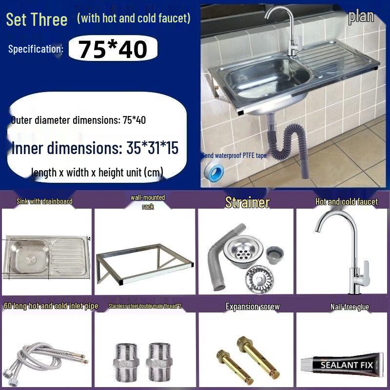 CHENDU Wall-Mounted Stainless Steel Double Basin Kitchen Sink Set — купить товар онлайн с бесплатной доставкой по всему миру!