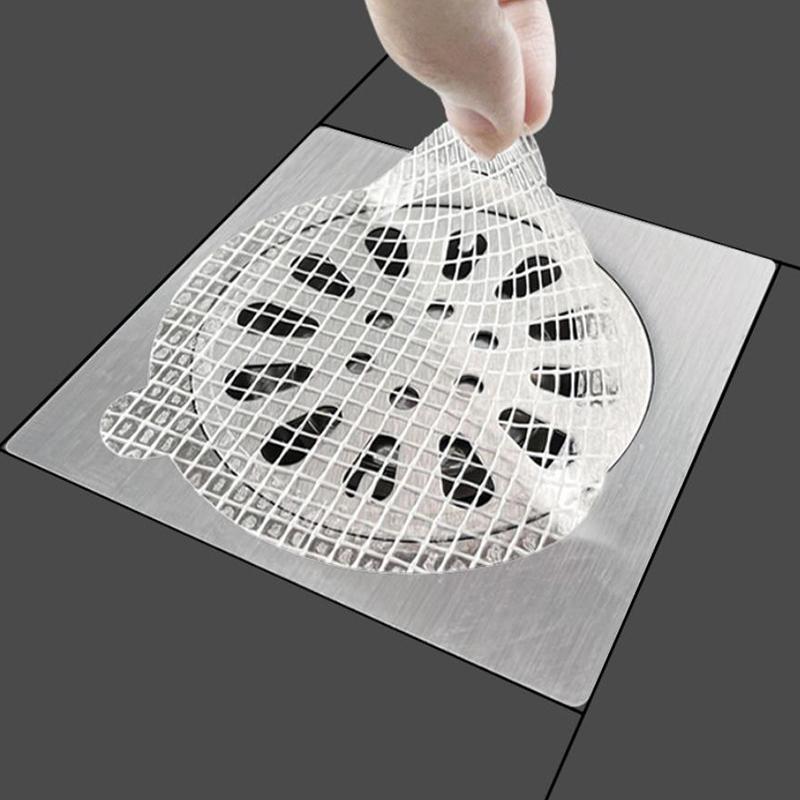 20PCS Disposable Shower Drain Hair Catcher Mesh Stickers Bathroom Hair Filter Net Anti-blocking Kitchen Drain Cover Stickers