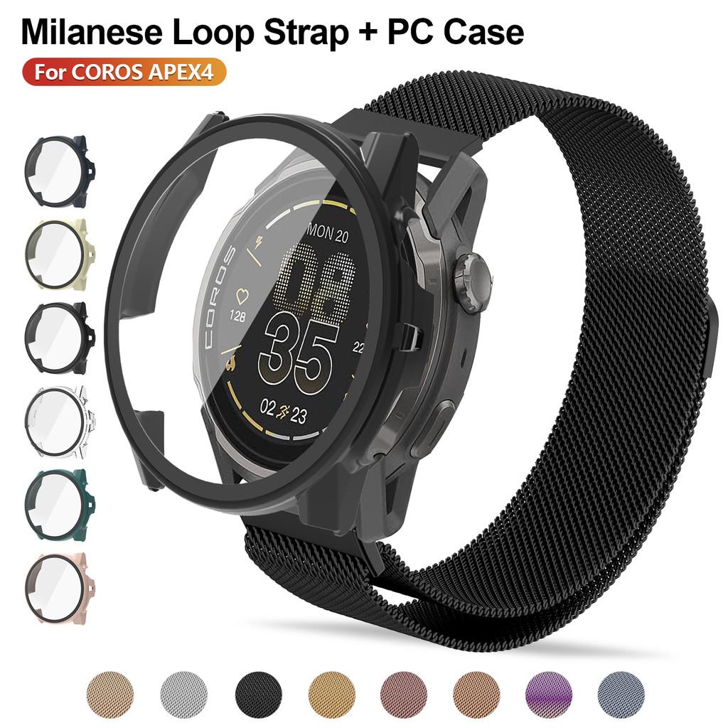 Tempered Glass PC Case and Magnetic Milanese Strap for COROS APEX 4 42mm Stainless Steel Band Correa for COROS PACE 4 Bracelet