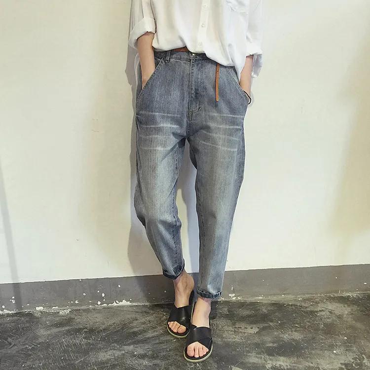 Женские джинсовые брюки большого размера с потертостями для весны/осени, студенческого стиля, свободного кроя, стройнящие, брюки-алладины, укороченные брюки с высокой талией