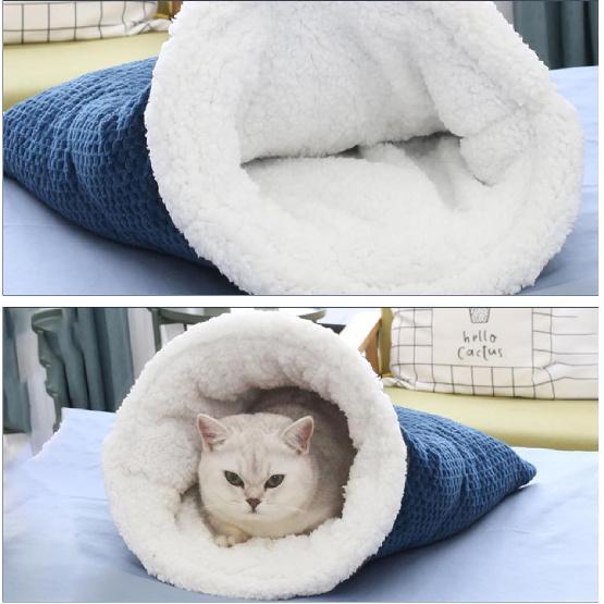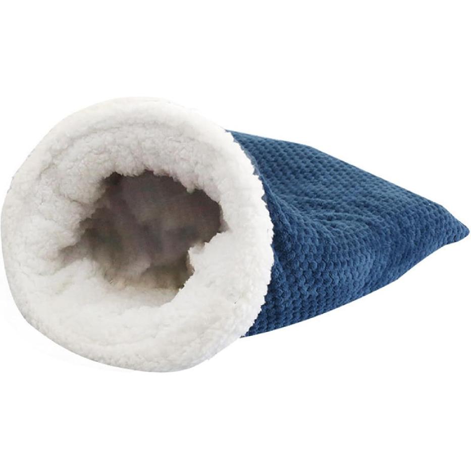 Cat Sleeping Bag - Soft Plush Large Self-Warming Bed for Winter, Cosy Cave 360 Wrap Comfortable Pet Snuggle Sack for Cats up to 6kg, Dark Blue