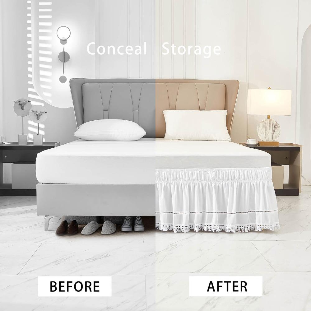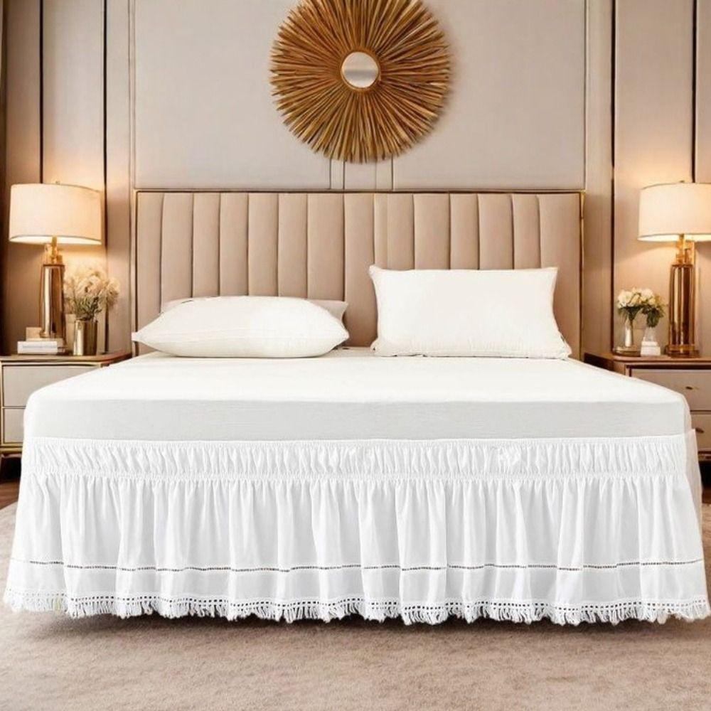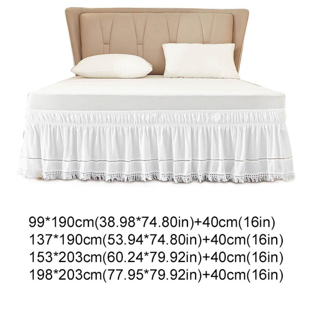 Practical Elastic White Fringed Bed Skirt Ruffled Stretchable Under-bed Covering Skirt Dust-proof Romantic Bedspread Hotel