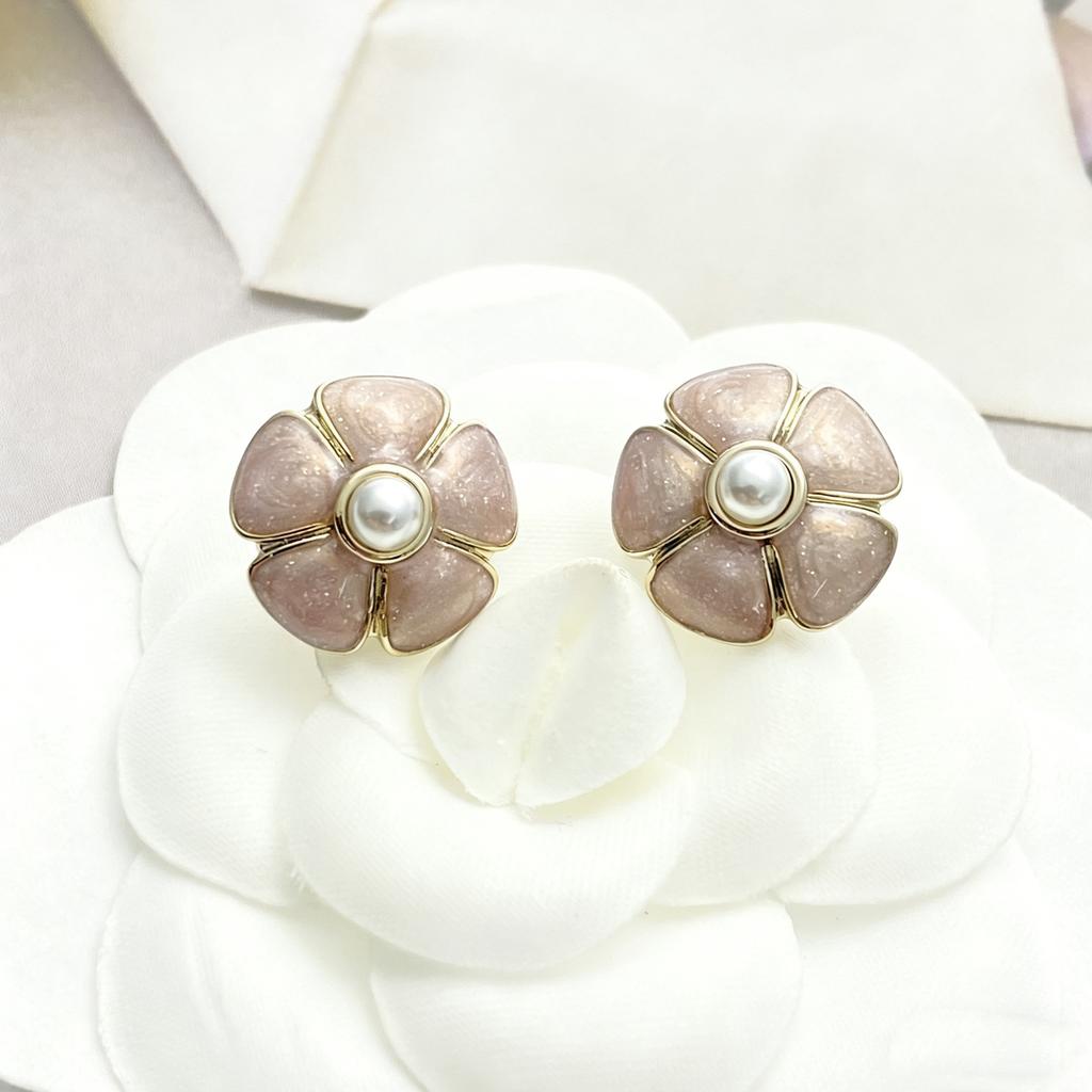 Розовые серьги с жемчугом в виде цветка Добавление элементов-заклепок Модные и изысканные высококлассные на заказ Подарок