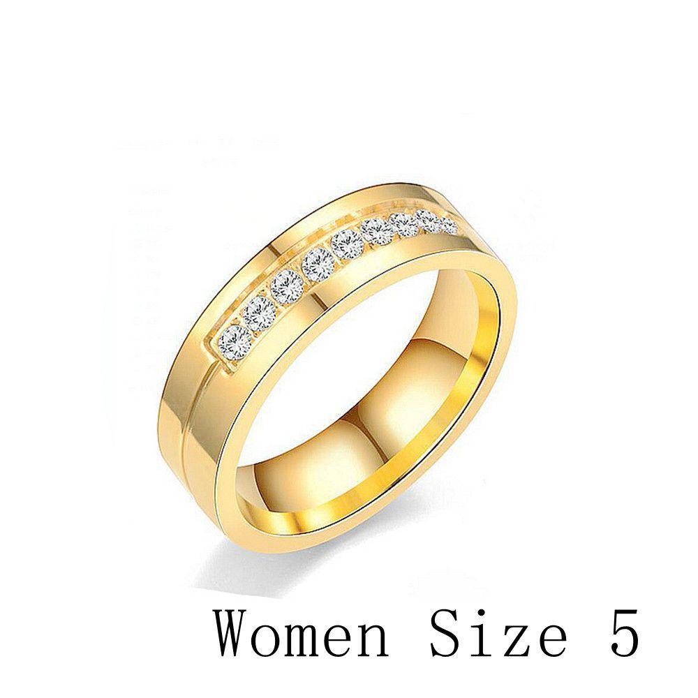 Women Men AAA CZ Love Cubic Zirconia Stainless Steel Wedding Band Ring 18K Gold Plated