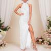 Женская Мода Вечеринка Однотонный Вырез на Шее Круглый Вырез Без Рукавов Пайетки Разрез Длинная Юбка Бант Платье Вечернее Платье