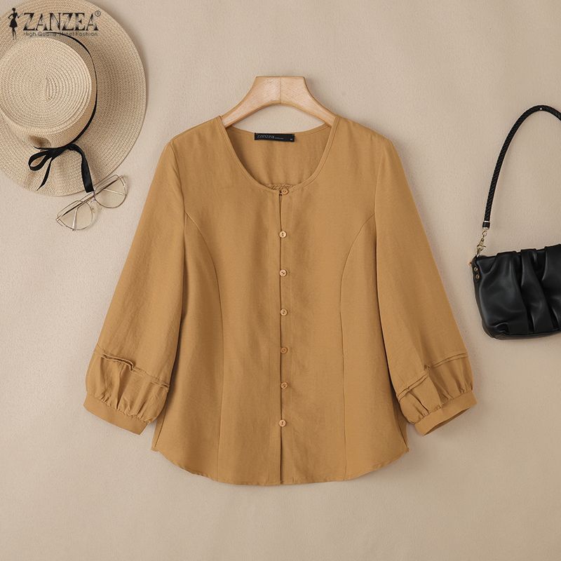 ZANZEA Женская повседневная блузка с круглым вырезом, однотонная, с рукавами 3/4 — купить товар онлайн с бесплатной доставкой по всему миру!