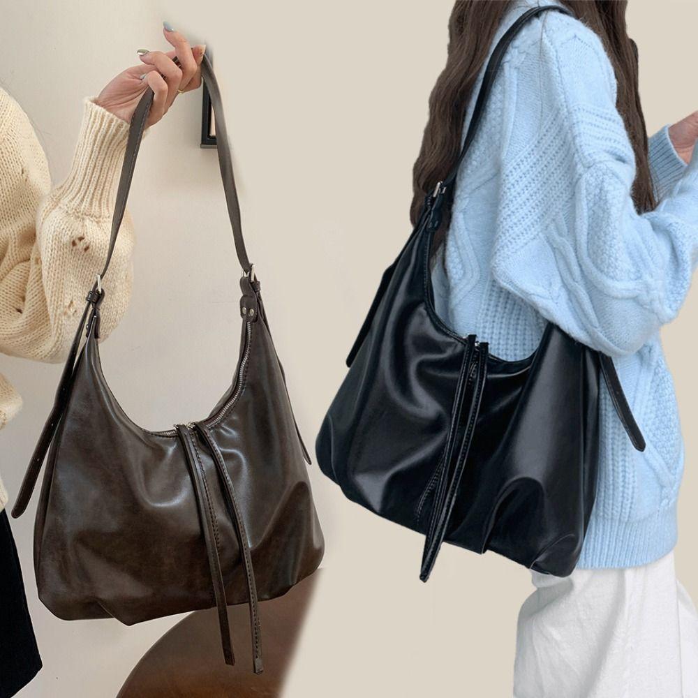 Solid Color Tote Bag Large Capacity Ladies Crossbody Bag Trendy Pu Shoulder Bag Holiday