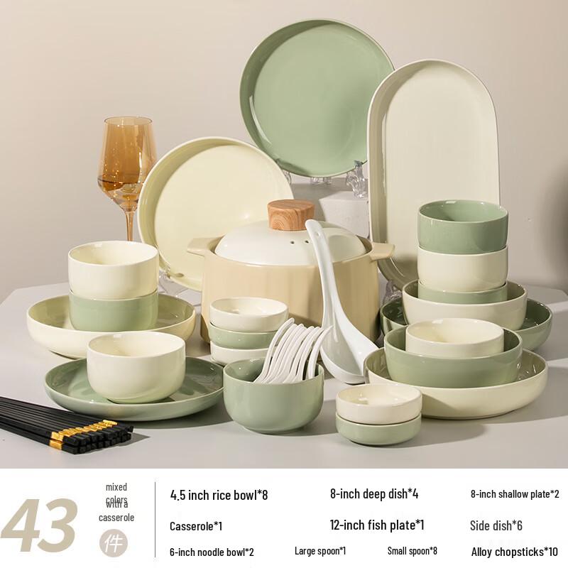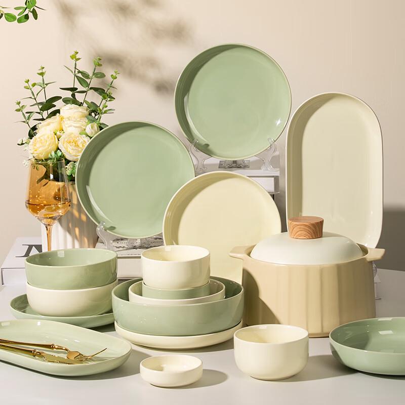 Керамический набор столовой посуды в кремовом стиле