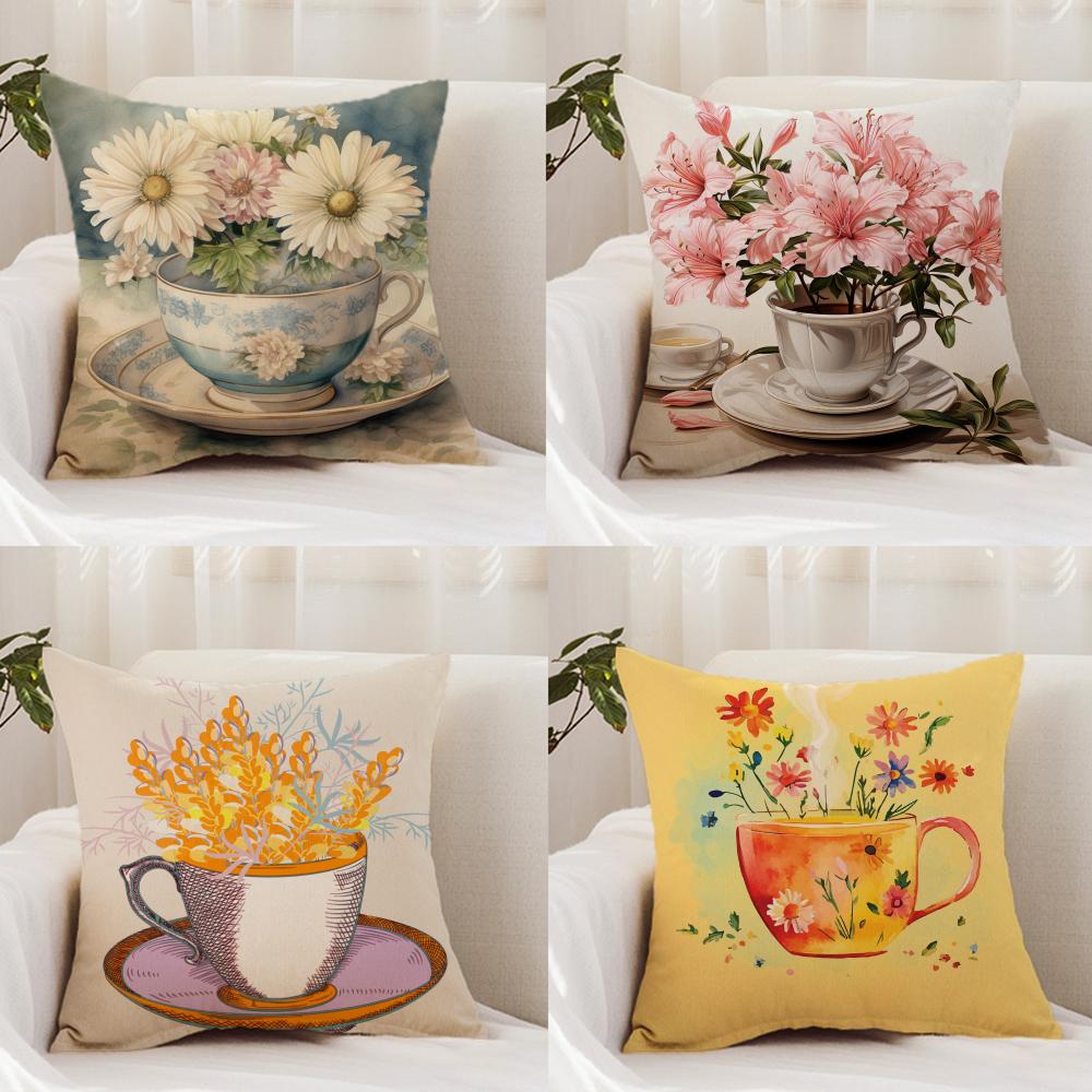 Наволочка для подушки «Чашка цветов» Премиальный комфорт Двусторонняя наволочка - Дизайн двойного назначения для дома и автомобиля — купить товар онлайн с бесплатной доставкой по всему миру!