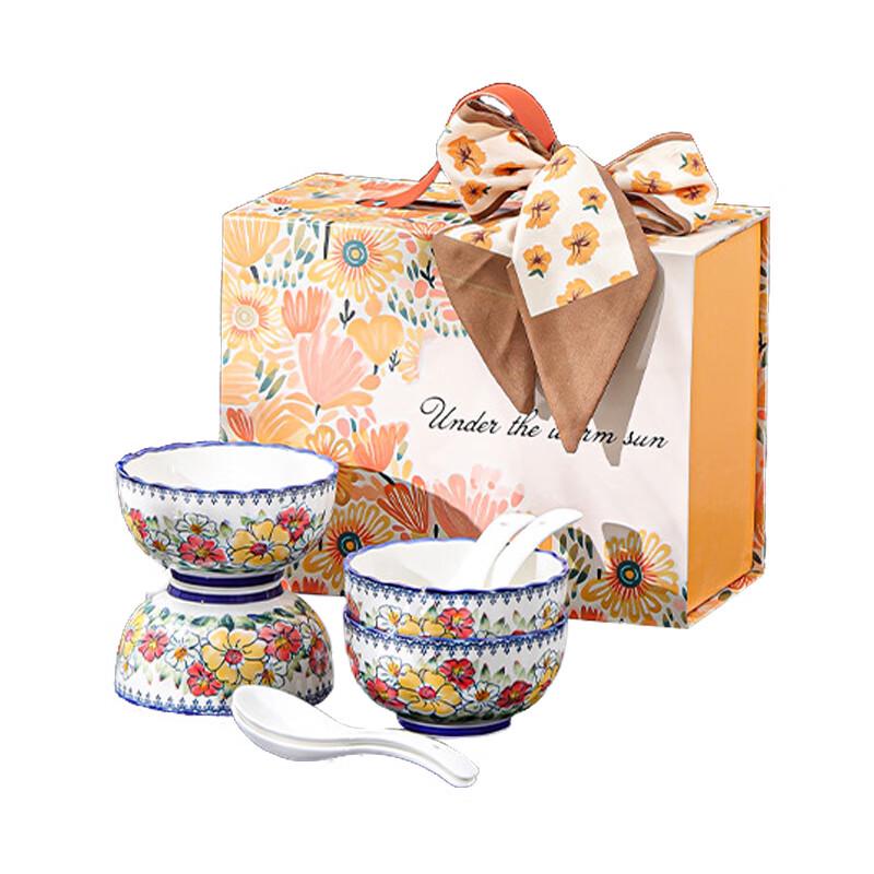 ZIPOYA Floral Ceramic Dinnerware Set (4 Bowls, 4 Spoons) — купить товар онлайн с бесплатной доставкой по всему миру!