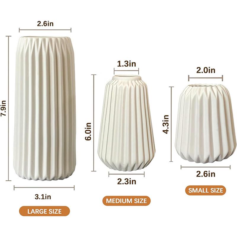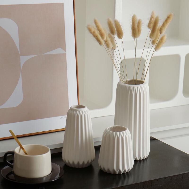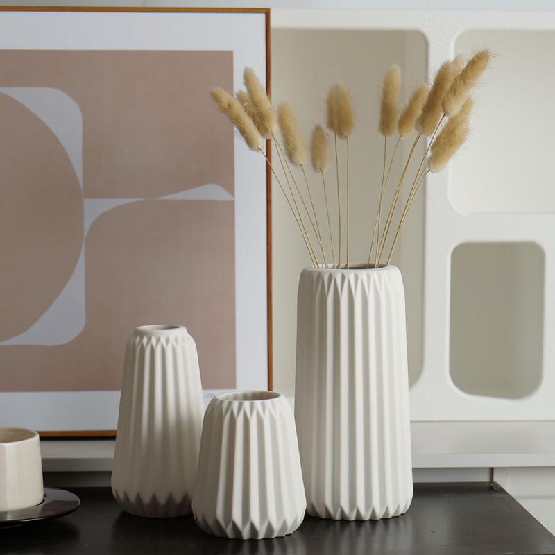 Белый скандинавский декоративный набор из 3 ваз с вертикальной полосой
