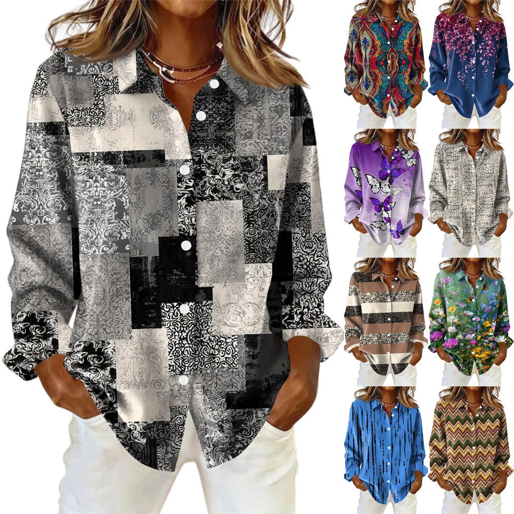 Женская рубашка с пуговицами с цветочным принтом, повседневная рубашка с длинными рукавами, блузки, повседневные базовые топы больших размеров — купить товар онлайн с бесплатной доставкой по всему миру!