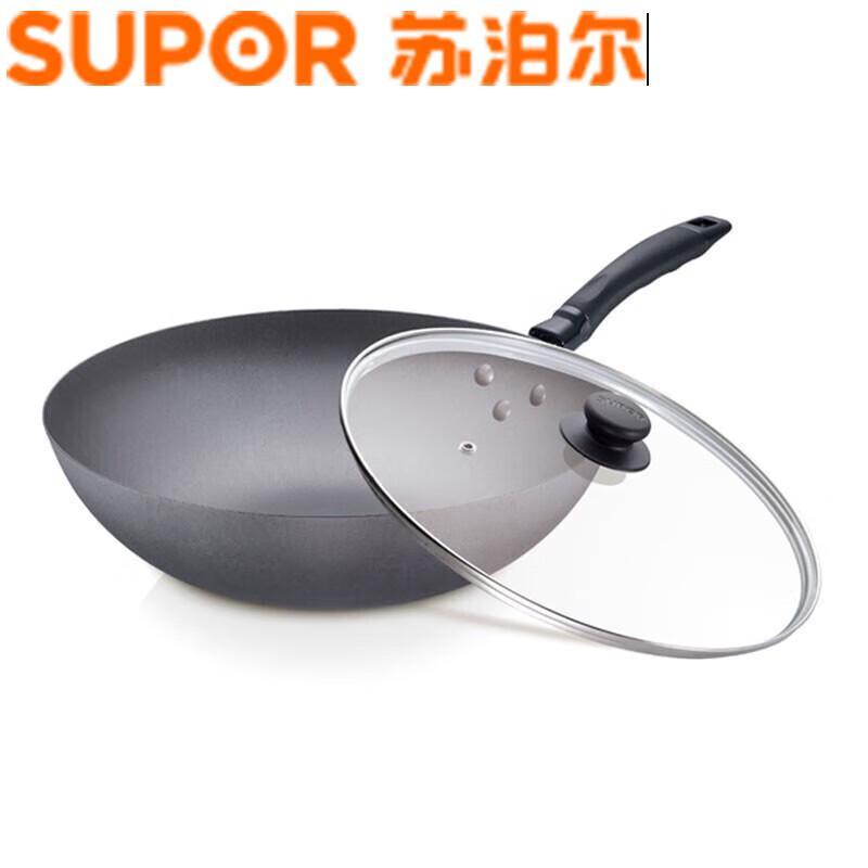 Supor 30cm Cast Iron Wok with Glass Lid