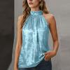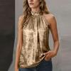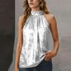 Женские Модные Вечерние Блузки Плиссированная Блузка с Воротником-стойкой Майки Без Рукавов