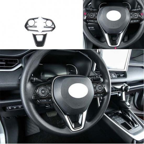 Cover Trim 3PCS Black Wood Grain Steering Wheel Frame For Toyota RAV4 -
