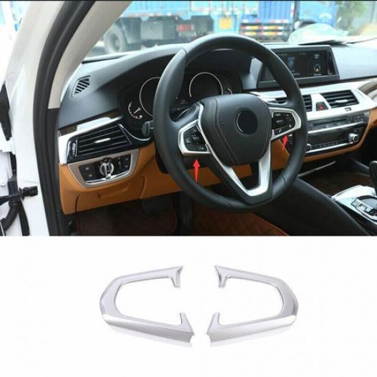 Fit For BMW X3 G01 2018- ABS Silver Steering Wheel Button Frame Trim 2PCS