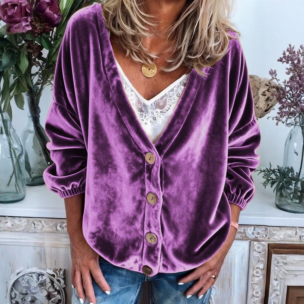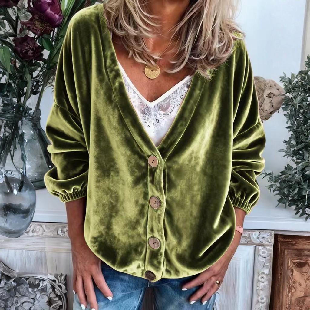Женский повседневный кардиган V-образного выреза с длинными рукавами, женский велюровый топ.