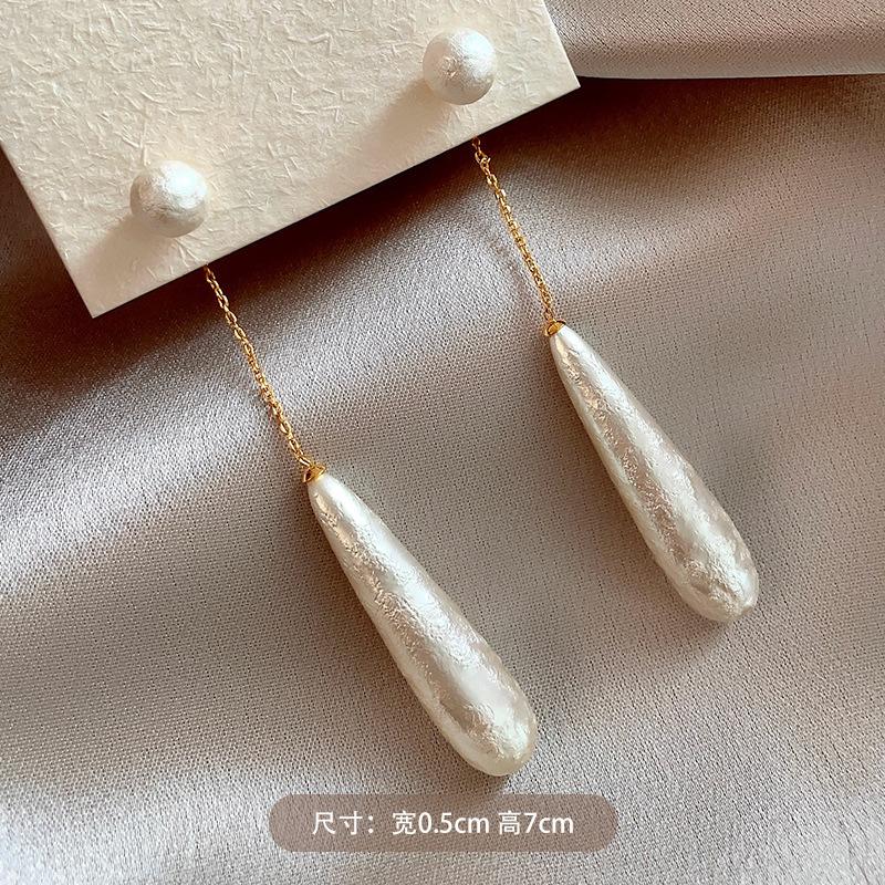 Vintage French Textured Pearl Water Drop Earrings Elegant Two-Wear Long Stud Earrings Dress Earrings