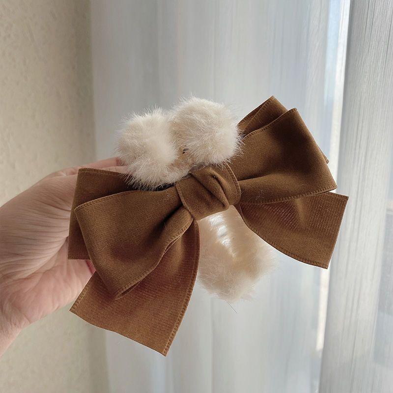 Autumn and winter plush bow large grab clip women's back head hair shark clip Internet celebrity same head jewelry