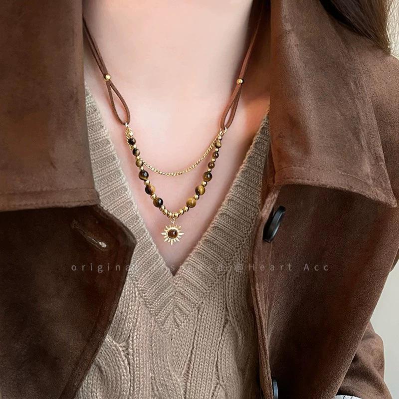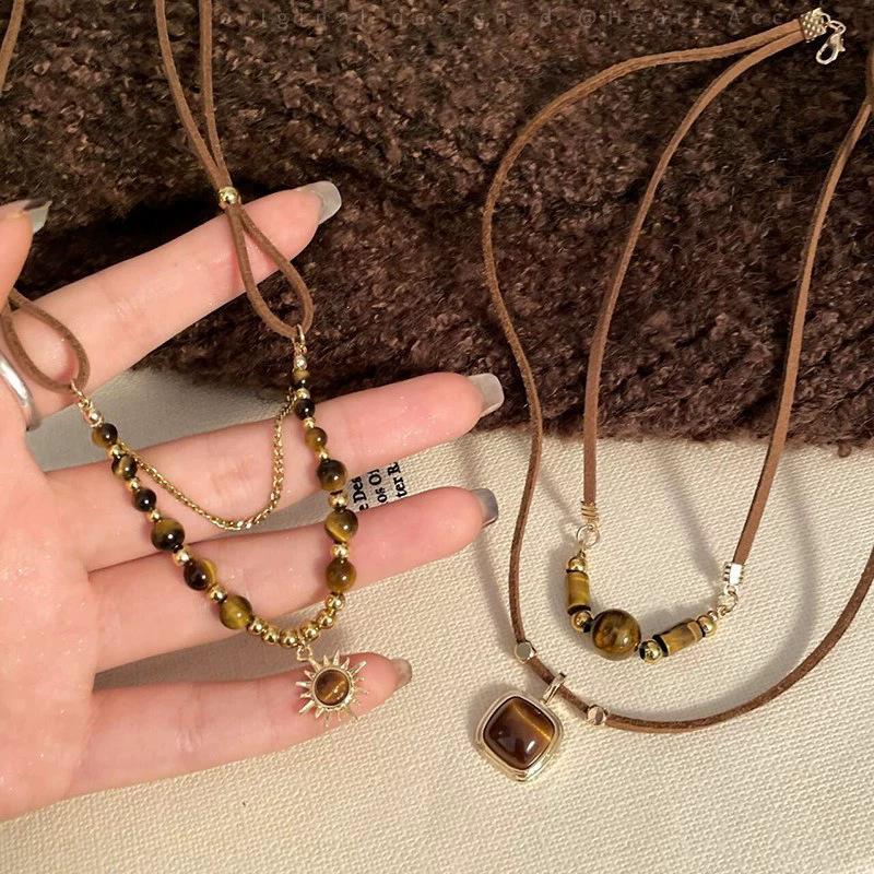 Винтажное геометрическое ожерелье-подвеска из тигрового глаза, дизайн «цепочка-свитер Майяр», предметы с чувством стиля