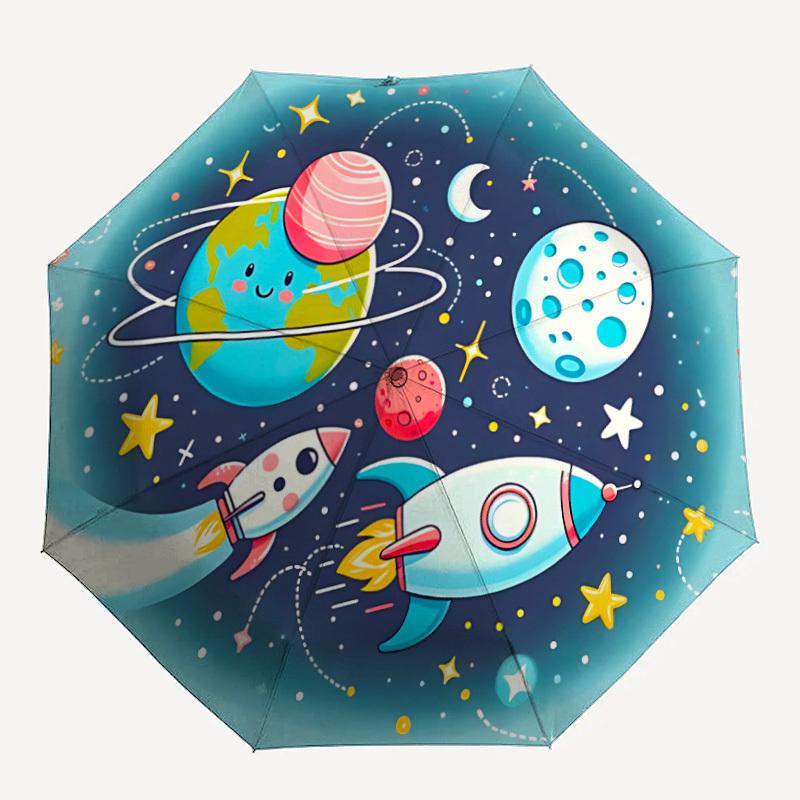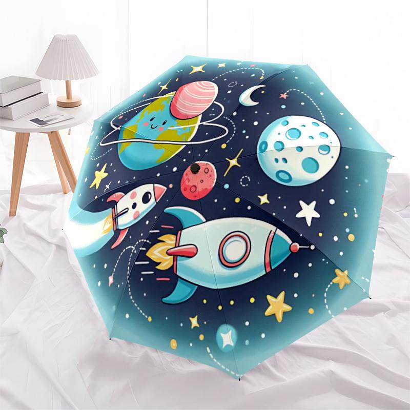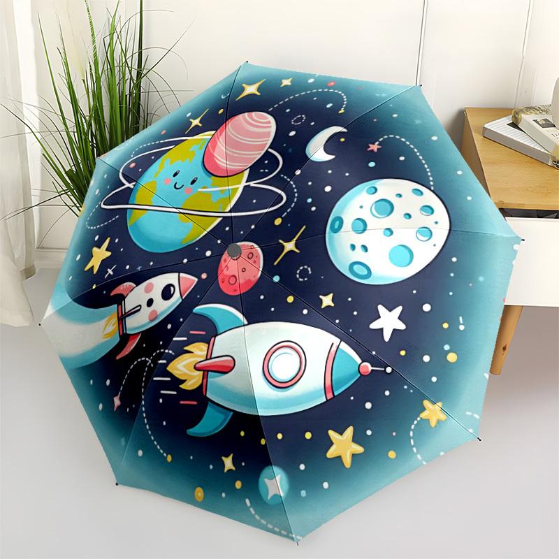1pc Space Adventure Automatic Umbrella Auto Open/Close Folding Umbrella with 8 Rib Frame, 3 Fold Compact Umbrella for Men & Women, 139