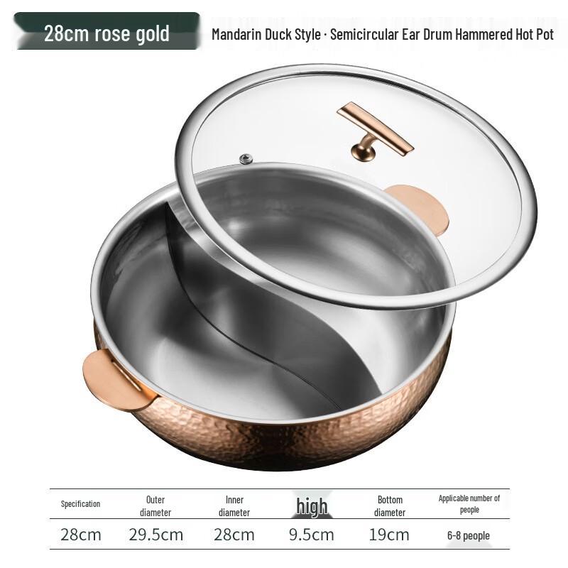 ZMR 28cm Rose Gold Hammered Divided Hotpot with Lid — купить товар онлайн с бесплатной доставкой по всему миру!