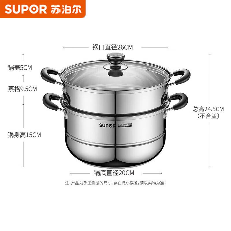 SUPOR 28cm 304 SS Double-Layer Steamer Pot — купить товар онлайн с бесплатной доставкой по всему миру!