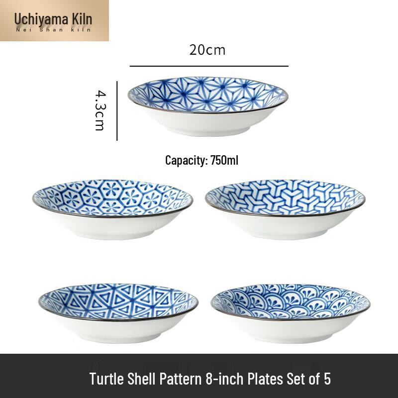 Uchiyama Kiln Japanese Ceramic 8-inch Dinner Plate Set
