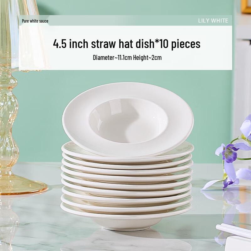 Wuhe Pure White Ceramic 4.5-inch Straw Hat Dipping Dish Set (10 Pack)