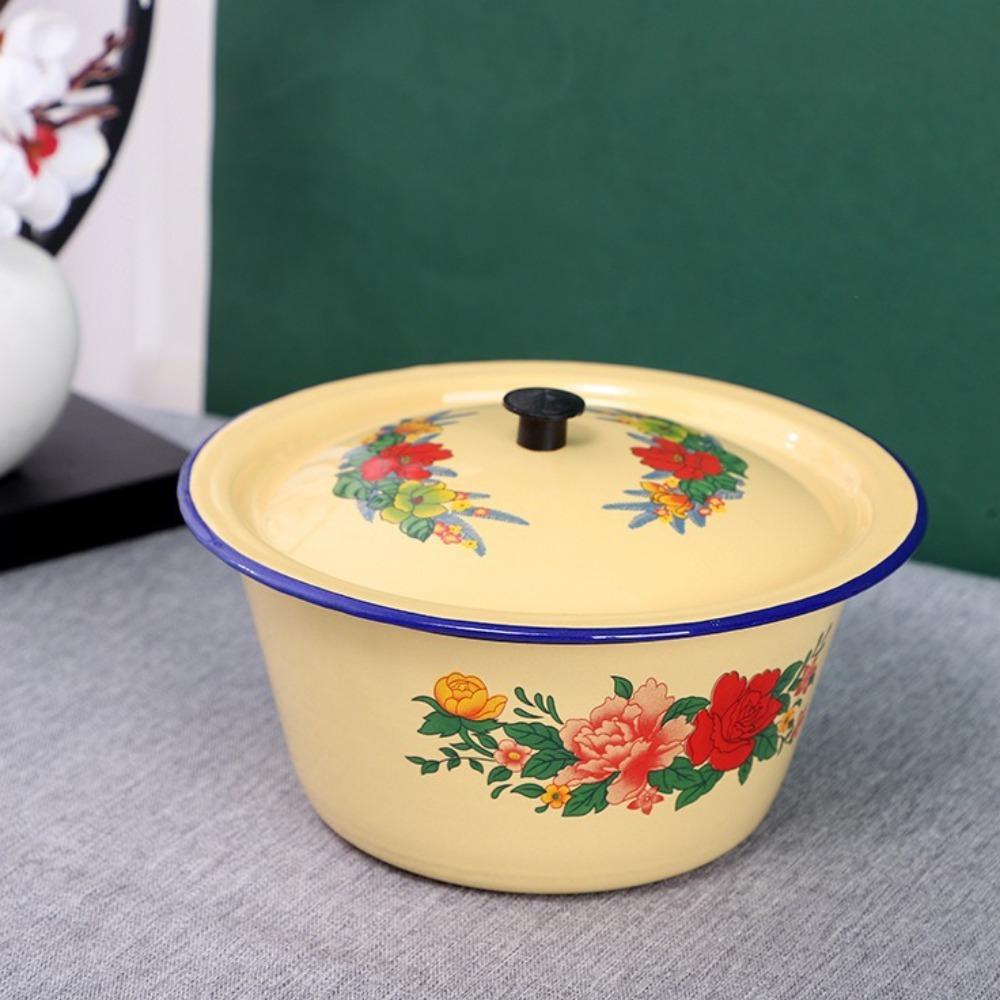 with Lid Strawberry Cake Basin Yellow Soup Container Stylish Enamel Bowls Popcorn