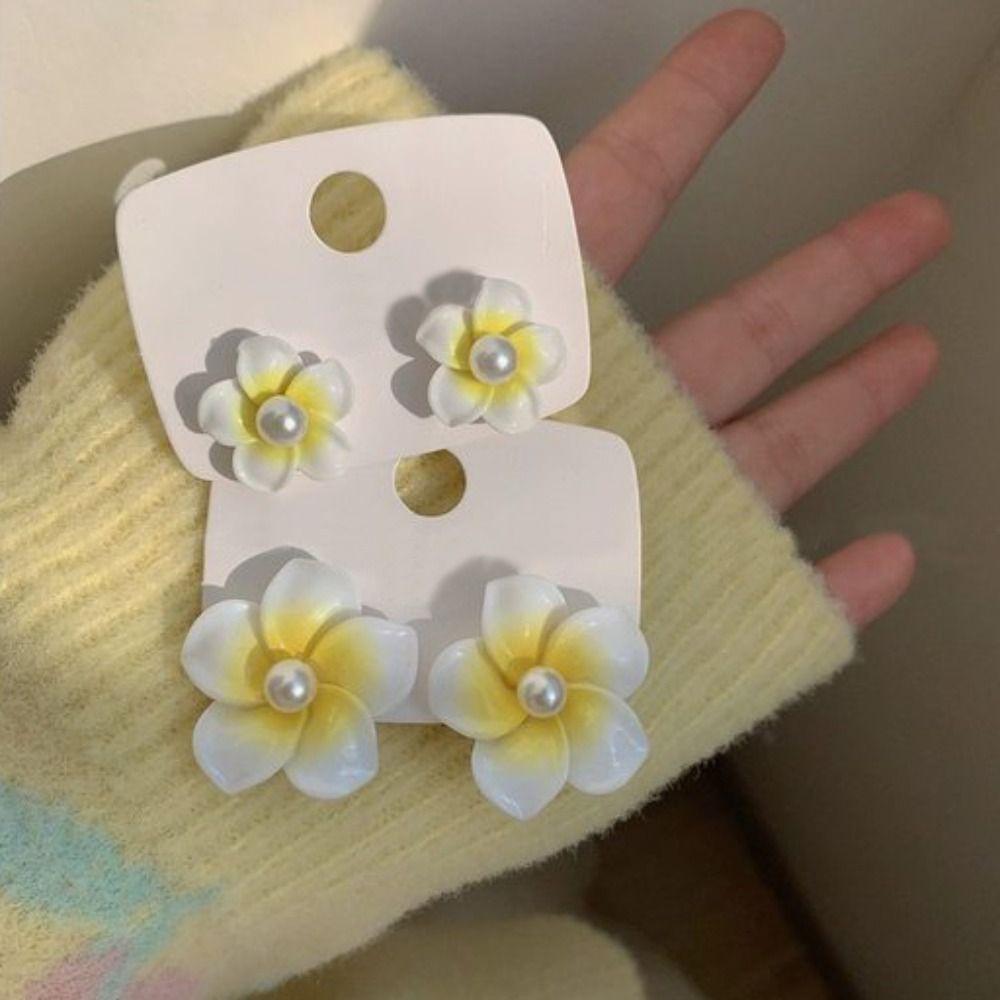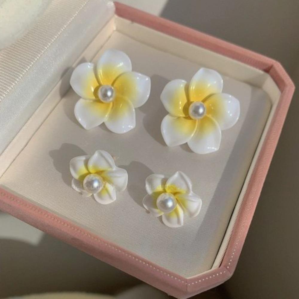 Милые элегантные серьги-пусеты в виде цветка, Гавайские серьги с жемчугом, пусеты в виде цветка плюмерии, для вечеринки