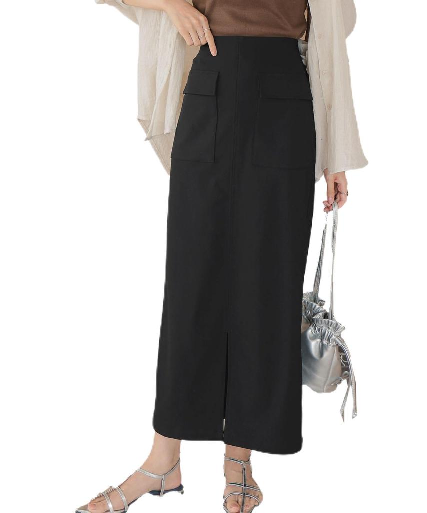 Kobe Lettuce Stretch Tight Maxi Long Black Skirt, Cargo-Style Skirt, Length, Length, Casual, Stretchy, [M4077] L, Maxi,