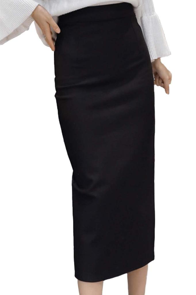 Unibayes Black Mini to Long Tight Skirt with Office Skirt Black Women's Slits, Stretch, (L, 03)