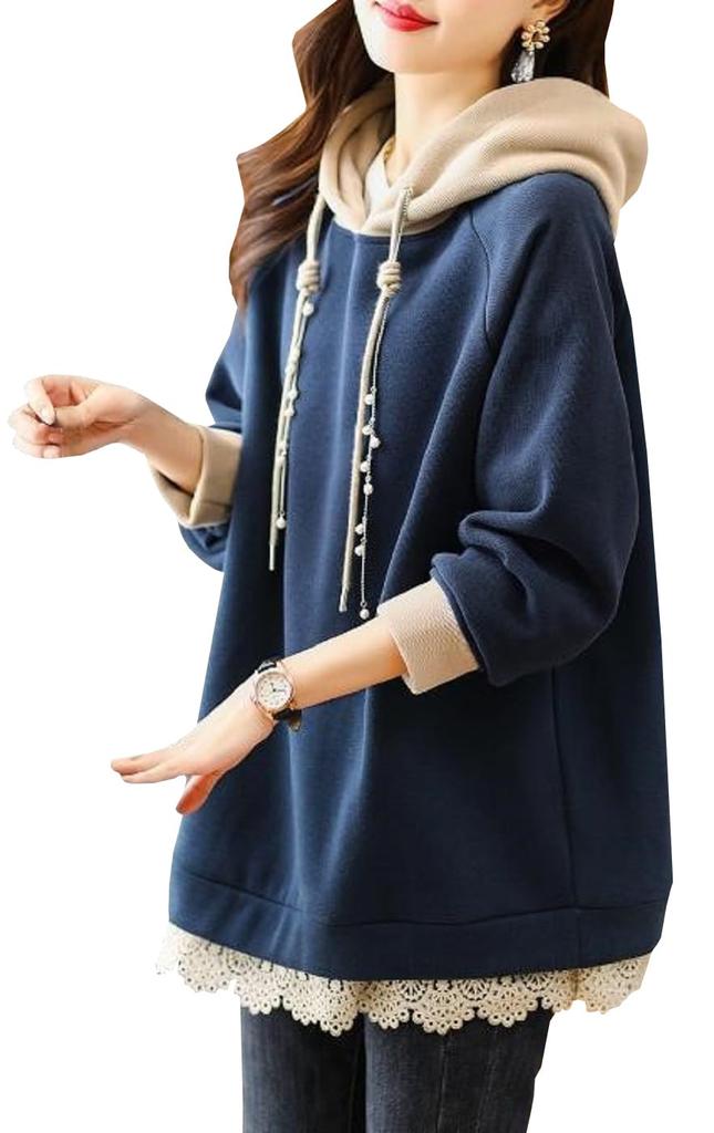 This women's pullover hoodie features a lace hem and faux pearl design for a sophisticated yet sophisticated look. The two-tone color scheme, with a contrasting hood and top, creates a modern and trendy look, making it easy to mix and match. Its perfect thickness, neither too thick nor too thin, makes it suitable for all seasons, from fall and winter through spring. The relaxed fit covers your waist and hips. It's a versatile piece for all ages, from teens and students to office ladies and moms. The lace hem adds a girly, feminine touch to this casual hoodie, creating a sophisticated yet casual look. It's stylish enough for teens, 20s, 30s, and 40s, from high school students and university students to office ladies, and even for office casual wear. It's not too thick, so it's comfortable to wear on its own, or paired with jackets, denim jackets, hoodies, cardigans, coats, and other outerwear. It also pairs well with jeans, denim, stretch pants, and wide-leg pants. Please refer to the product image for sizing information. Please note that measurements are taken flat, so there may be slight variations in size. The actual color and texture of the fabric may differ from the product image due to lighting conditions at the time of photography.