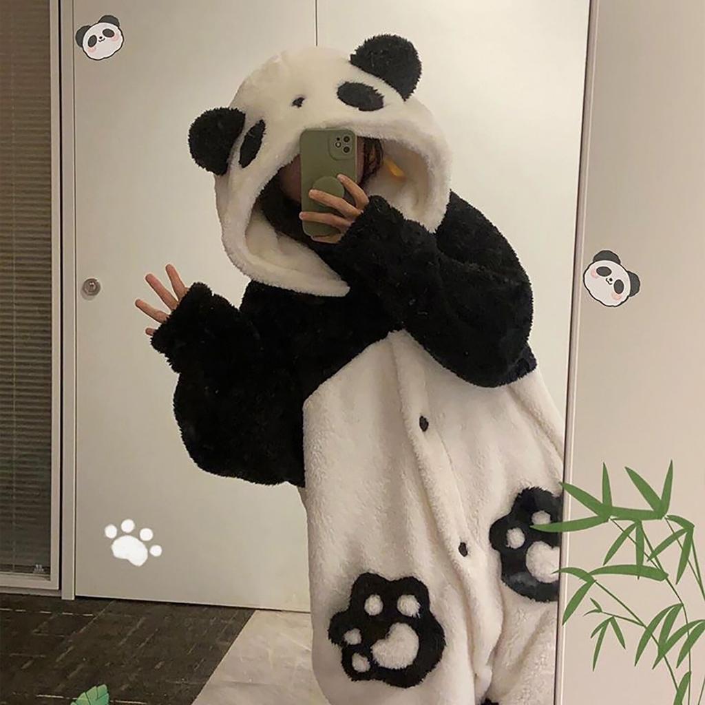 Панда Принт Носимый Холод Включает Низ и Перчатки [XHSUKADO] Одеяло, Веселый, Унисекс, Осень/Зима, Милый, С капюшоном, Пушистый, Домашняя одежда, Защита, Теплый,