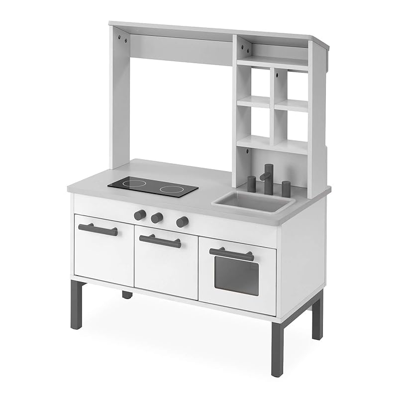 LOWYA Кухня для ролевых игр и набор для еды, идеально подходит для игры в продавца, с ящиком для игрушек и местом для хранения, Деревянная развивающая игрушка, Белый/Серый — купить товар онлайн с бесплатной доставкой по всему миру!