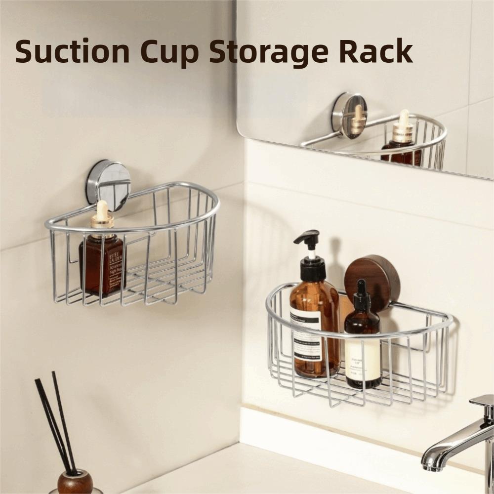 Stainless Steel Suction Cup Storage Rack Hollow-out Tissue Holder Bathroom Organizer Shelf Home