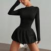 Мини-платье бодикон с длинными рукавами и плиссированными плечами — купить товар онлайн с бесплатной доставкой по всему миру!