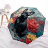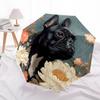 0106 Черный зонт-трость с цветочным узором и изображением собаки, автоматический складной, портативный и компактный дизайн, 8 спиц, рождественский или подарочный вариант.