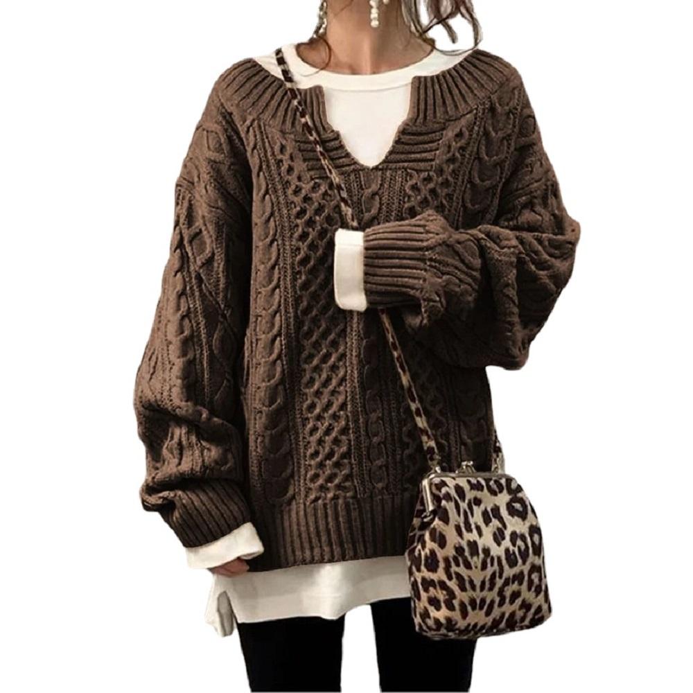 Женские осенне-зимние вязаные пуловеры и свитера, женские повседневные свободные свитера с длинными рукавами и v-образным вырезом, джемперы