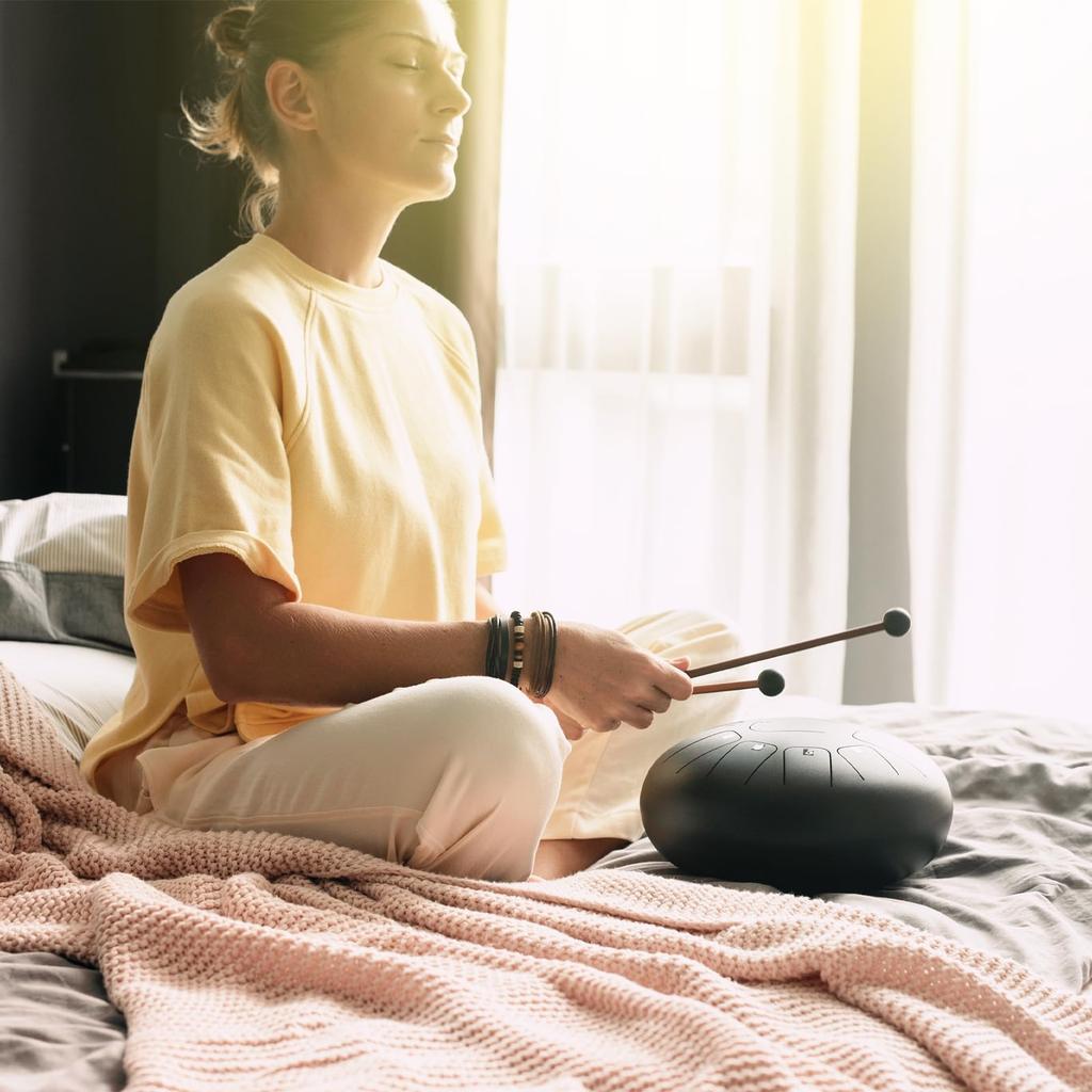 uxcell Steel Tongue Drum, 3" 6-Note Mini Steel Hand Drum with Mallets and Sheet Music, Worry-Free for Yoga, Meditation, and Camping (Black)