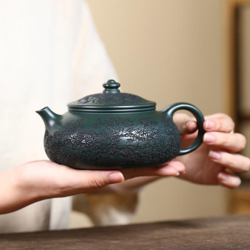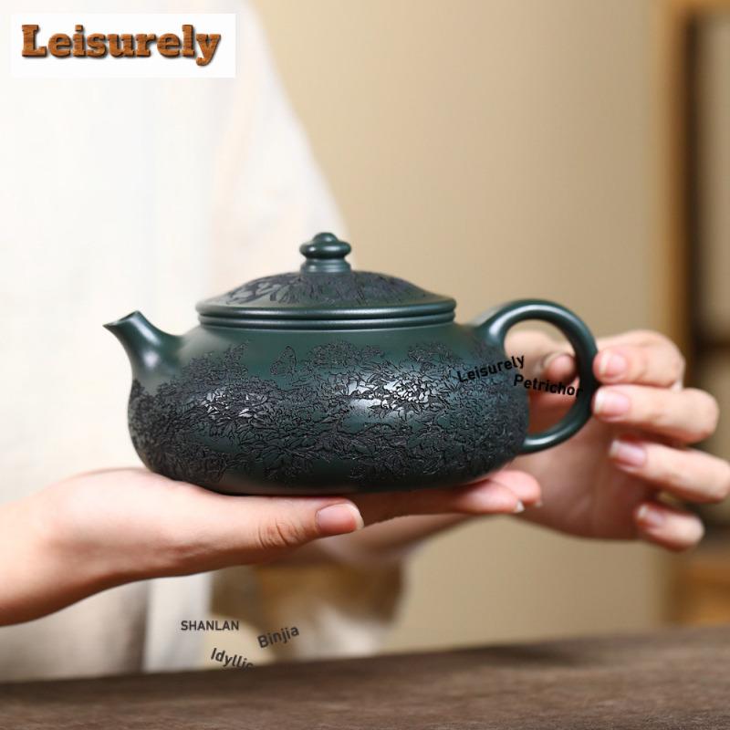 550 мл Чайник ручной работы из исинской фиолетовой глины Чайник «Хань Цзян» ручной работы Сырая руда Зеленая глина Чайник с ситечком Чайный набор из исинской глины Чайная церемония