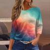 Женская Модная Повседневная Круглый Вырез 3/4 Рукава Свободная С Принтом Футболка Женский Топ