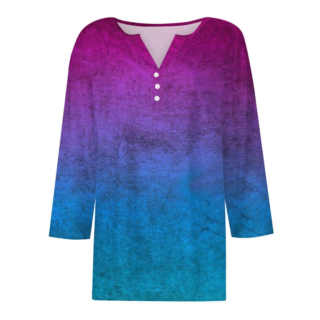 Women's T Shirt Tee Print Button 3/4 SleeveDaily Weekend Fashion Basic V, Neck Regular Top