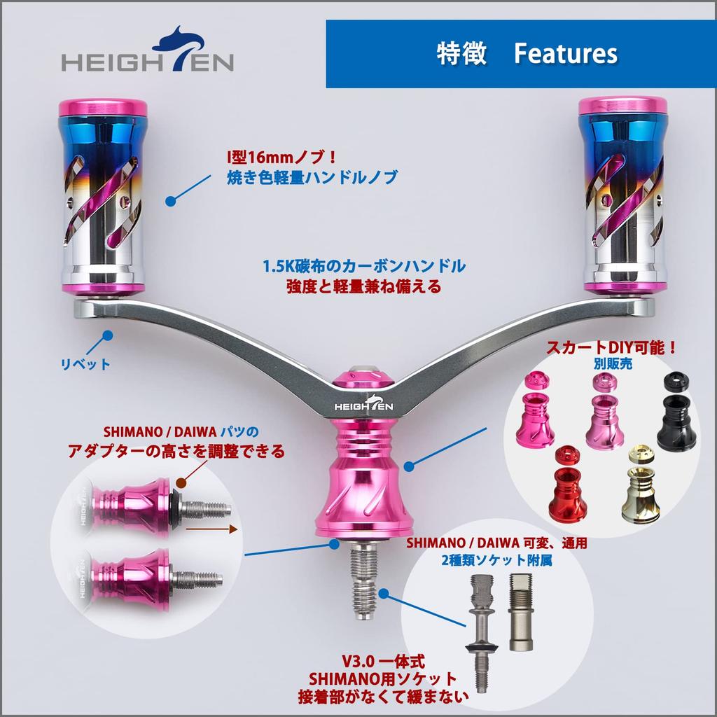 HEIGHTEN 92mm Reel Handle with 16mm Knob, Compatible with Shimano and Daiwa Spinning Reels, Vortex Series (Pink Knob & Gunmetal Handle) (587)