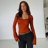 Женский модный кружевной топ с квадратным вырезом, длинными рукавами, облегающего кроя, универсальный — купить товар онлайн с бесплатной доставкой по всему миру!